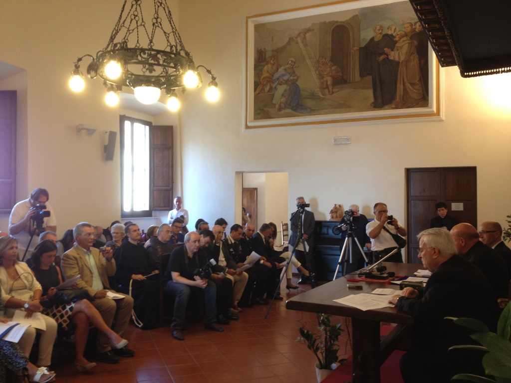 La Sala della Spoliazione nel giorno della conferenza stampa di presentazione del programma della visita di Papa Francesco